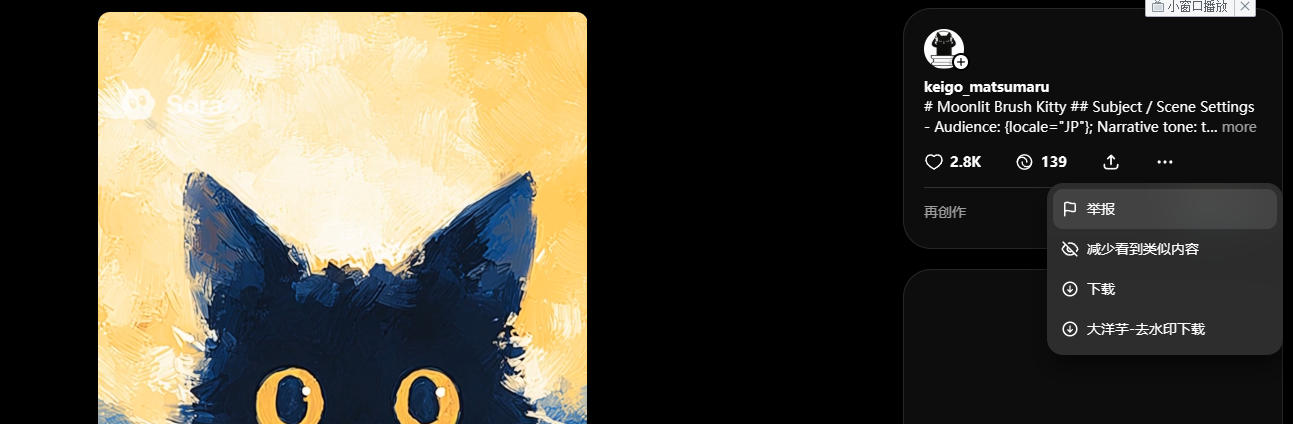 - 注意: 此功能属于实验性质,其效果可能随Sora官方更新而变化。
